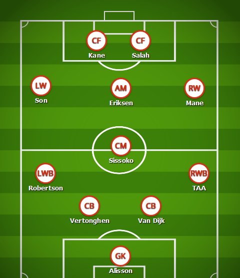 On the wings, we have Heung-min Son and Sadio Mane for pace, power, and goals, while Harry Kane and Mo Salah up top speak for themselves.