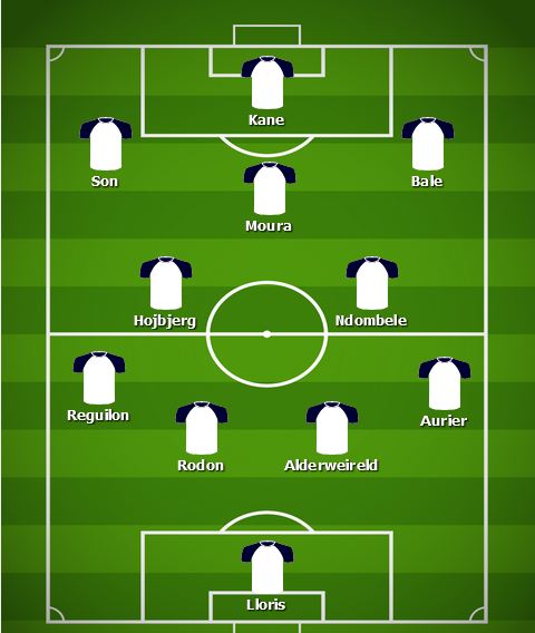 Pierre-Emile Hojbjerg and Tanguy Ndombele line up together in midfield as usual, with Lucas Moura playing his new number 10 role.