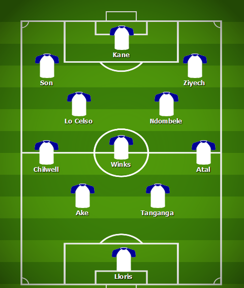 Harry Winks retains his spot as that holding sweeper in midfield after his game seems to be coming on under Mourinho of late. Lo Celso and Ndombele, both now fully fit, line up as creators ahead of Winks.