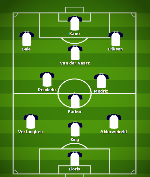 I have decided to drop the fullbacks to go for a back three of Jan Vertonghen, Ledley King, and Toby Alderweireld, just about as solid as you can get.
