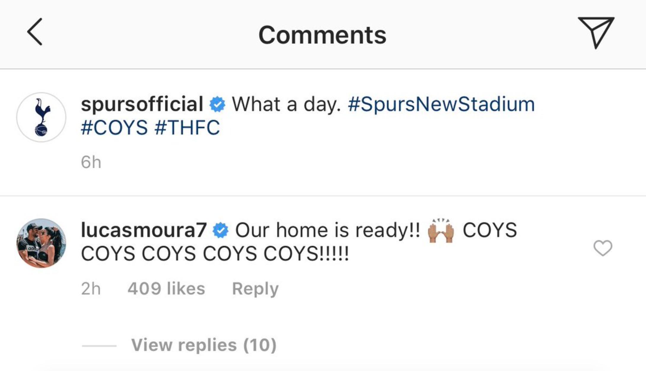 It is refreshing to see a player in the modern age who is so excited to play at our new home, hopefully Moura can rekindle the form he showed in the first few weeks of the season.