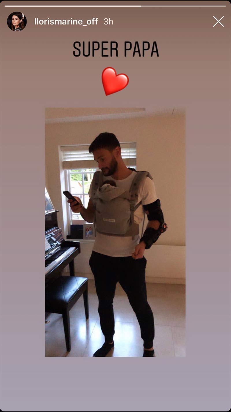 Hugo Lloris’ wife has shared a photo of the Tottenham Hotspur goalkeeper on her Instagram story which shows him wearing his arm support along with the caption ‘Super Papa’.