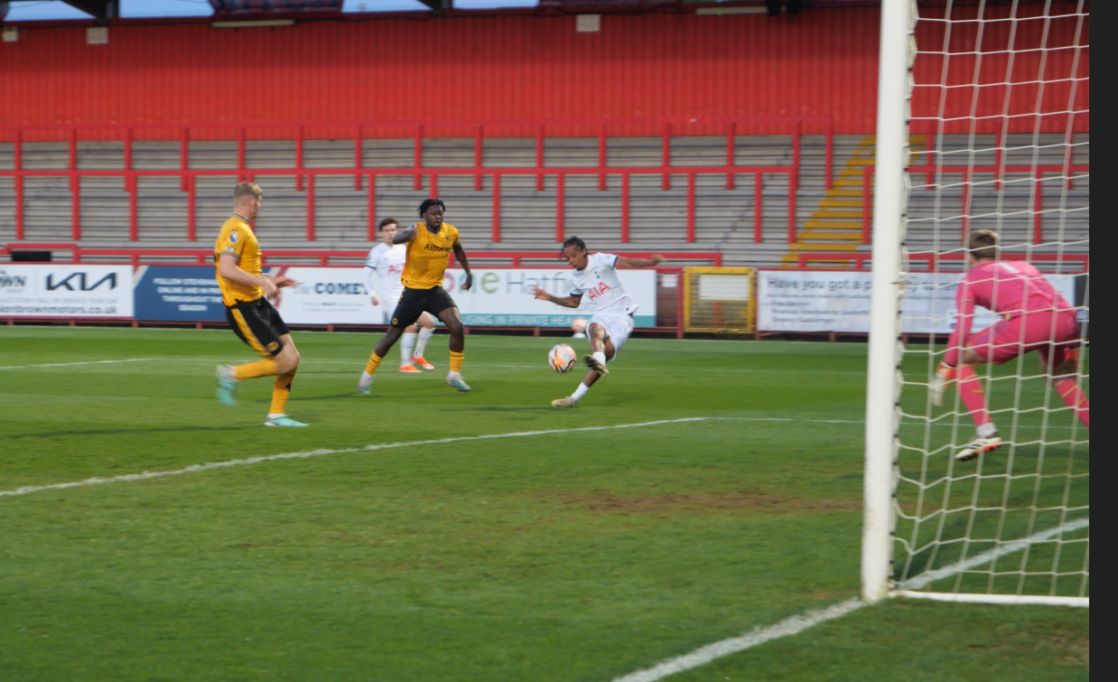 Tottenham could have had rewards instantly for their tactical tweak as Jamie Donley once again provided an excellent through ball in behind the Wolves defence, this time for Tyrese Hall whose effort was outstandingly saved by the opposing ‘keeper.