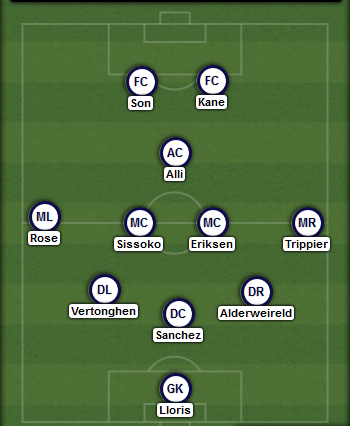 Lloris will start between the sticks, with a central defender trio of Jan Vertonghen, Davinson Sanchez, and Toby Alderweireld.