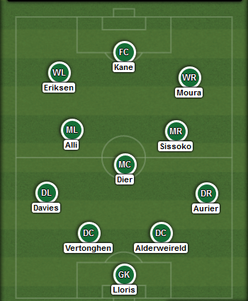 A central midfield partnership of Eric Dier, Moussa Sissoko, and Dele Alli will sit behind the likes of Harry Kane, Lucas Moura, and Christian Eriksen.