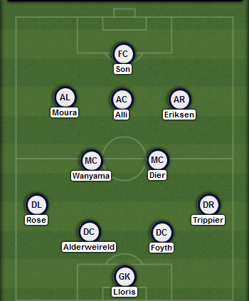 Danny Rose and Kieran Trippier will rotate back in, and Foyth will start again after his positive Man City performance to give Vertonghen a rest, with Alderweireld next to him.