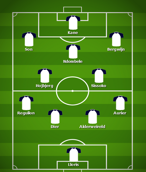 As usual, Pierre-Emile Hojbjerg and Moussa Sissoko partner up in the engine room, despite Sissoko’s brief and unsuccessful spell at right-mid against Liverpool.