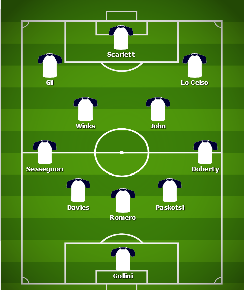 In the centre of the park, Harry Winks and Nile John partner each other, with the creativity of Giovani Lo Celso and new signing Bryan Gil just ahead of them. Finally, Dane Scarlett leads the line in the absence of Harry Kane.