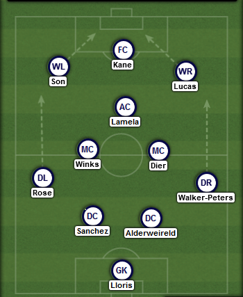 The centre backs are likely to stay the same, with Dier replacing Wanyama in midfield.