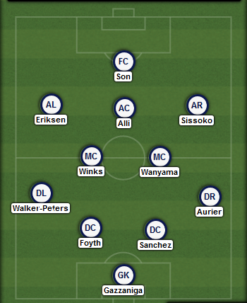 We believe Gazzaniga will replace the out of form Lloris in goal for this tie, with Kyle Walker-Peters and Serge Aurier in the full back positions.