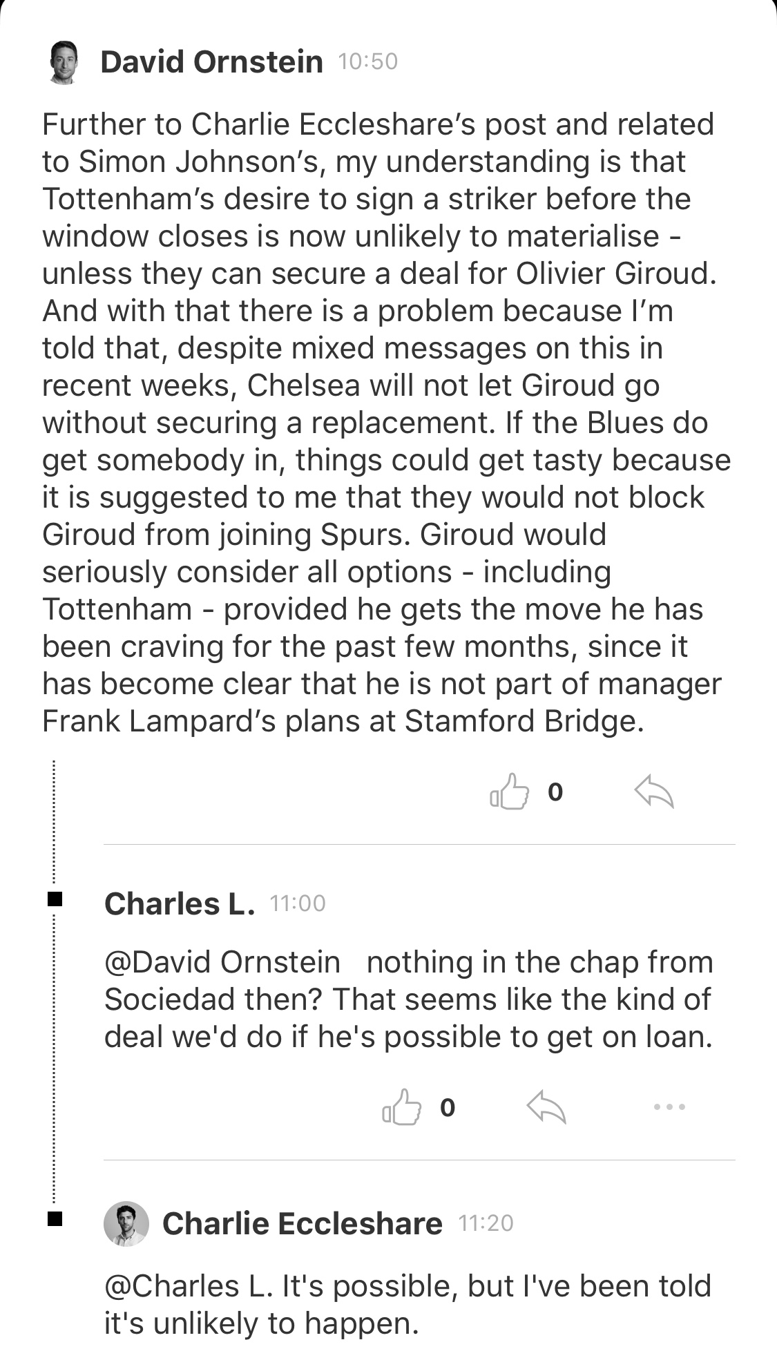 Giroud will be an extremely good fit given the experience he comes with. He will also be able to offer us a different option from the bench which we have lacked since we let Llorente leave in the summer. However, I just can’t see Chelsea selling him to us given that we are both in direct competition for the fourth spot.