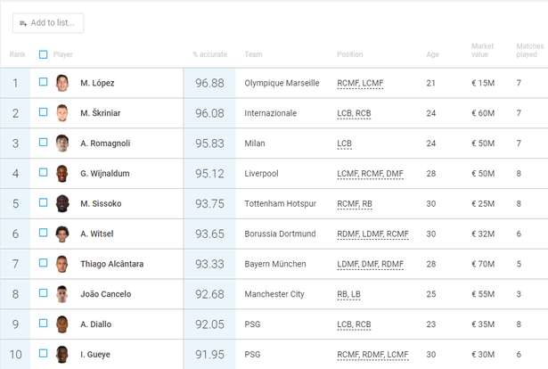 Moussa Sissoko is famed for a lack of end product, but he boasts an impressive 93.75% passing accuracy in the final third this season.