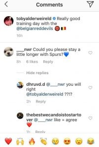 One fan commented on Toby’s latest Instagram pic, asking ‘Could you please stay a little longer with Spurs?’