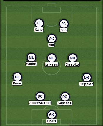 Harry Winks and Moussa Sissoko will man the midfield, with Christian Eriksen providing an extra body just beyond them.