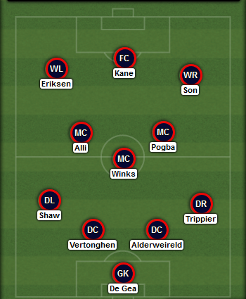 Harry Winks mans the central midfield position on his own, with Dele Alli and Paul Pogba a little further forward.