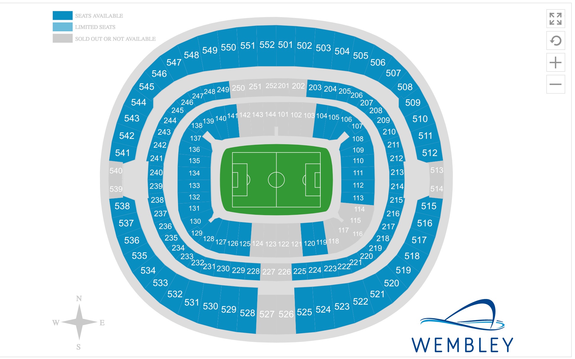 From the stadium grid shown on the club’s ticket website, it appears only a few sections have actually sold out and the large majority of areas still have wide availability to select from.