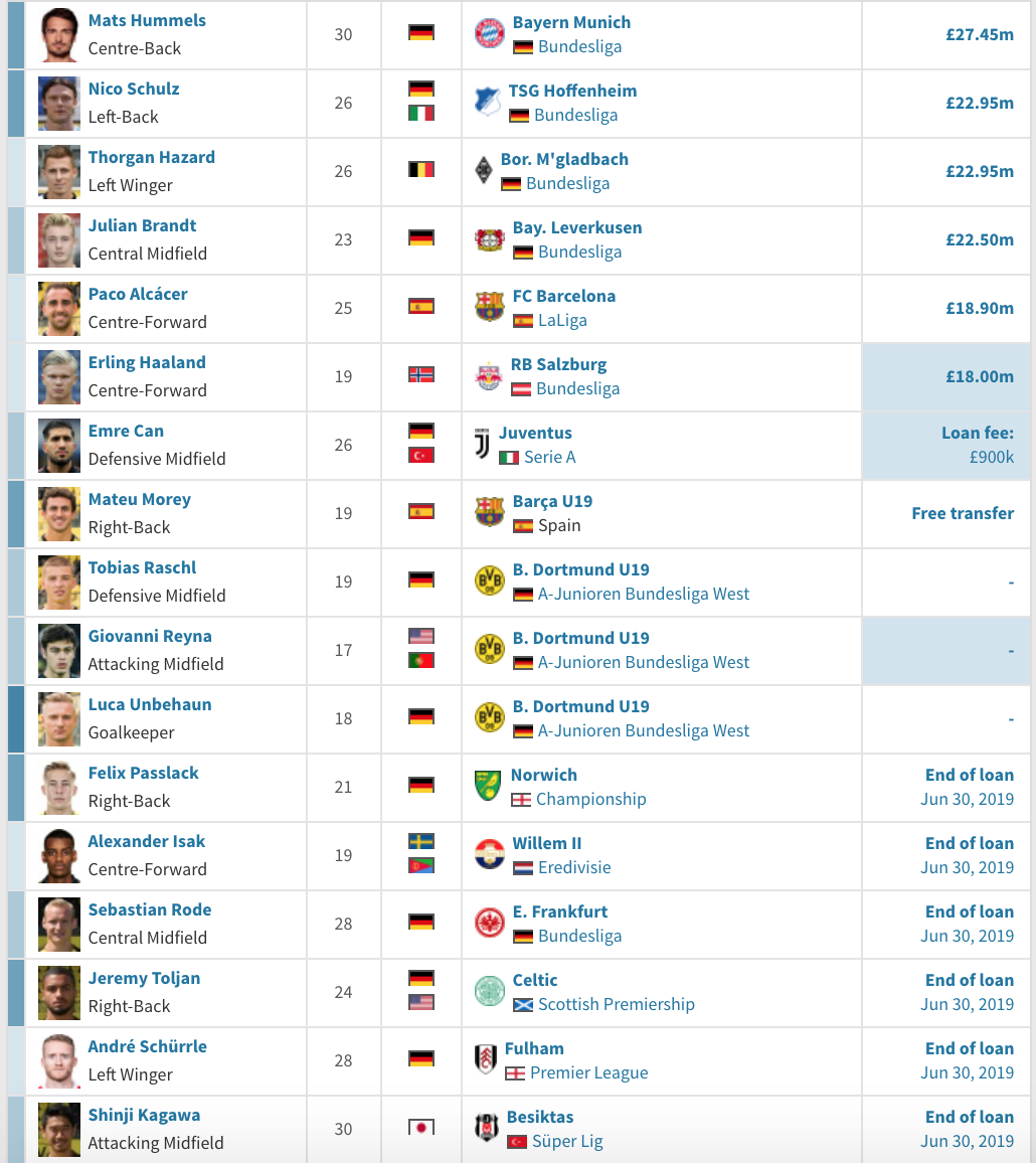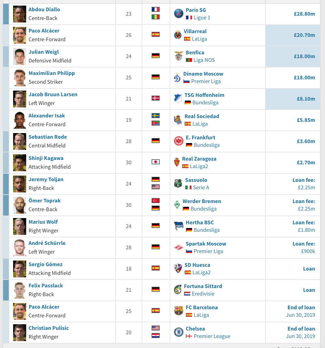 Dortmund’s 19/20 arrivals (transfermarkt)