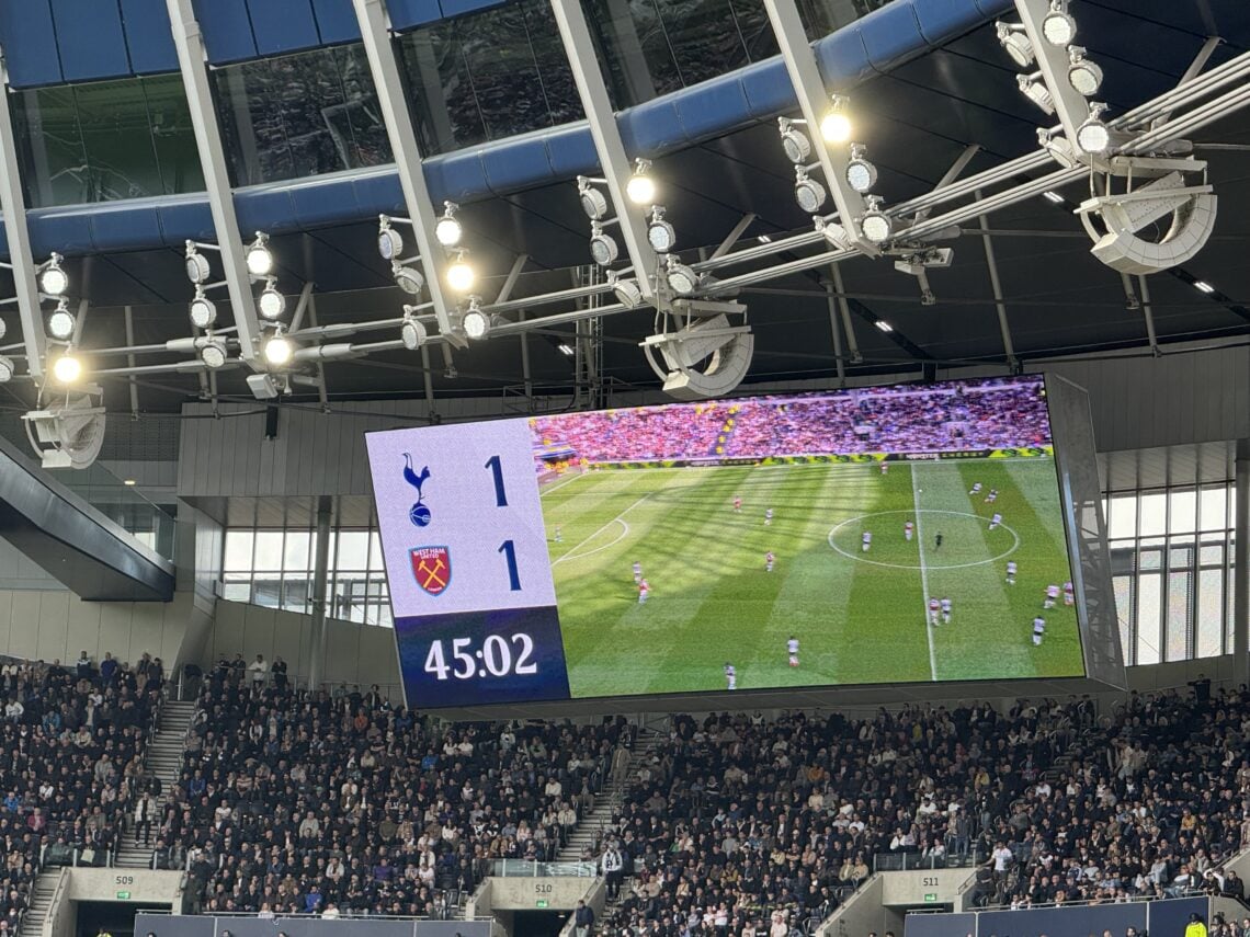 Spurs and West Ham are level at the interval 1-1 after goals from Kudus and Kulusevski.